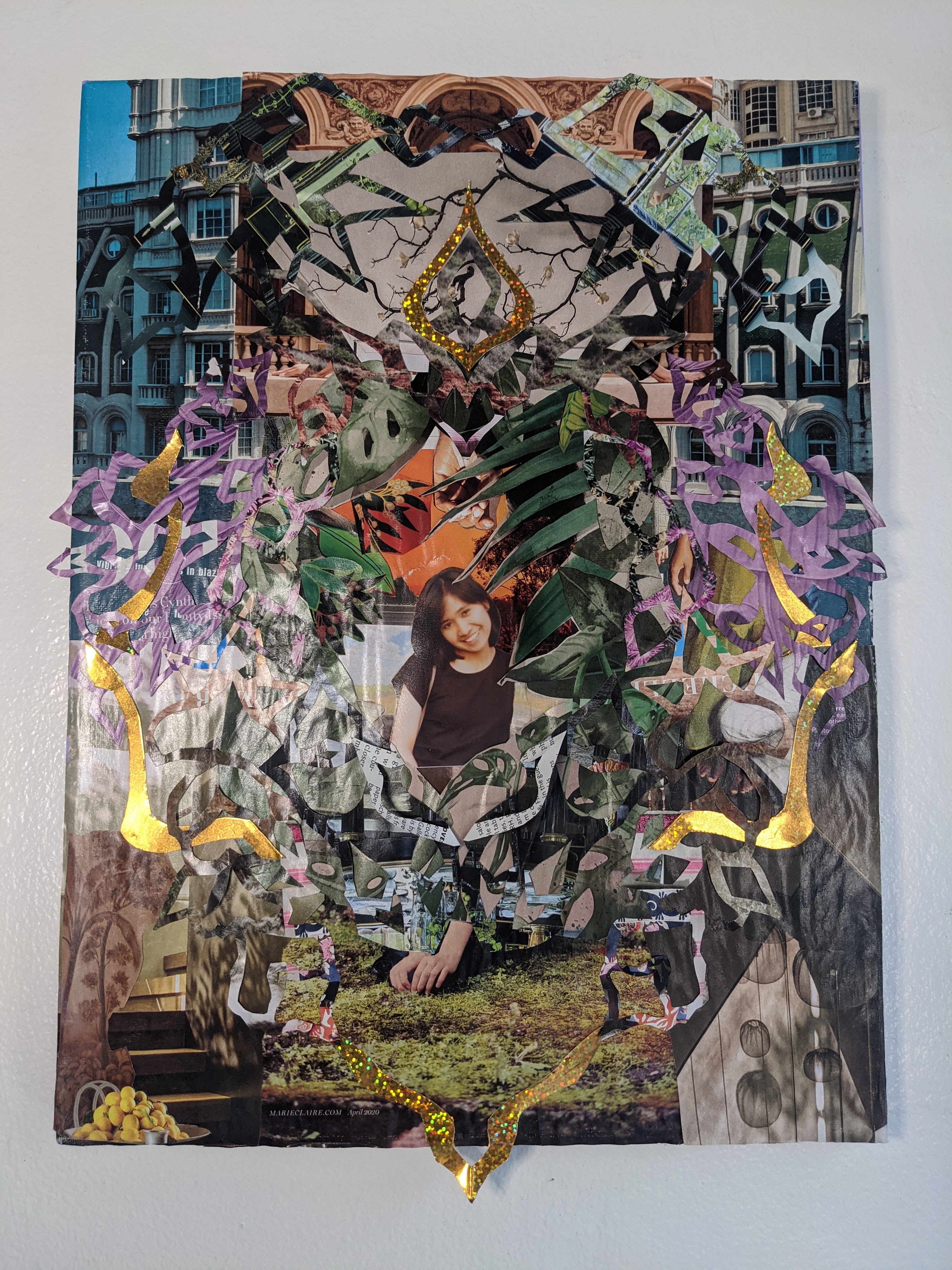 Helen Ragus, May 3, 1962 – October 17, 2021. This is a collage portrait we did together while she was on her deathbed. She picked several of the images and I assembled them. I told her she to choose any photo for her own portrait, she chose this sweet pic of her at age 21, from a time when her life was still her own.